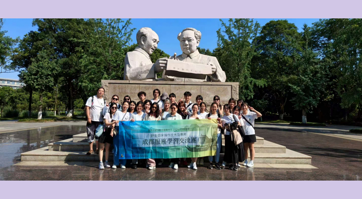 學生赴成都中醫藥大學交流,並於其附屬醫院實習。在專業指導下,學生為成都社區居民提供健康諮詢與基礎治療服務。透過與市民溝通及義診實踐,不僅強化了學生對民眾健康的責任意識,也體現了服務社會、回饋社區的道德價值。是次實習讓學生有機會比較成都與中國香港兩地中醫診療方法的異同,從而認識到中醫體系在不同地域的文化調適與實踐動態。在服務過程中,學生進一步培養了對病人疾苦的共情能力與同理心,並建立更強烈的責任感。